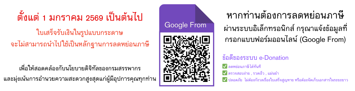 บริจาคผ่านบัญชีธนาคารและคิวอาร์โค้ด