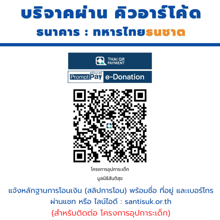 ไลน์ไอดี : santisuk.or.th (สำหรับติดต่อ โครงการอุปการะเด็ก)